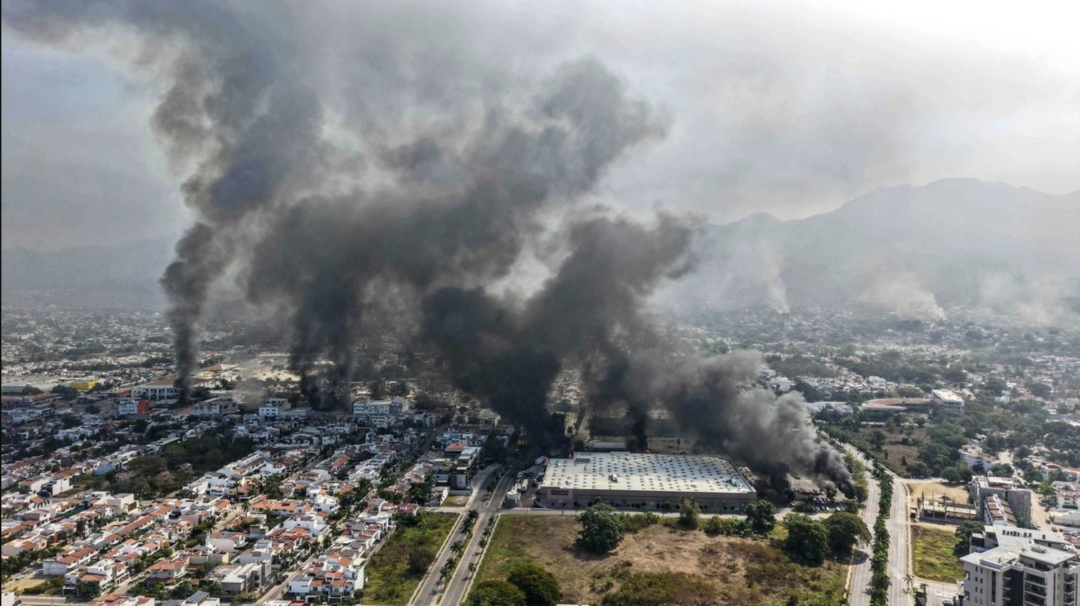 从哈利斯科州传出的视频中能看到一片“末日”景象:天际线上浓烟滚滚,从沃尔玛、COSTCO等大型商超到街区便利店,几乎所有店铺都遭到打击。墨西哥西北部各州,包括美墨边境的蒂华纳市,有居民报告听到爆炸声和阻碍公共秩序的行为。